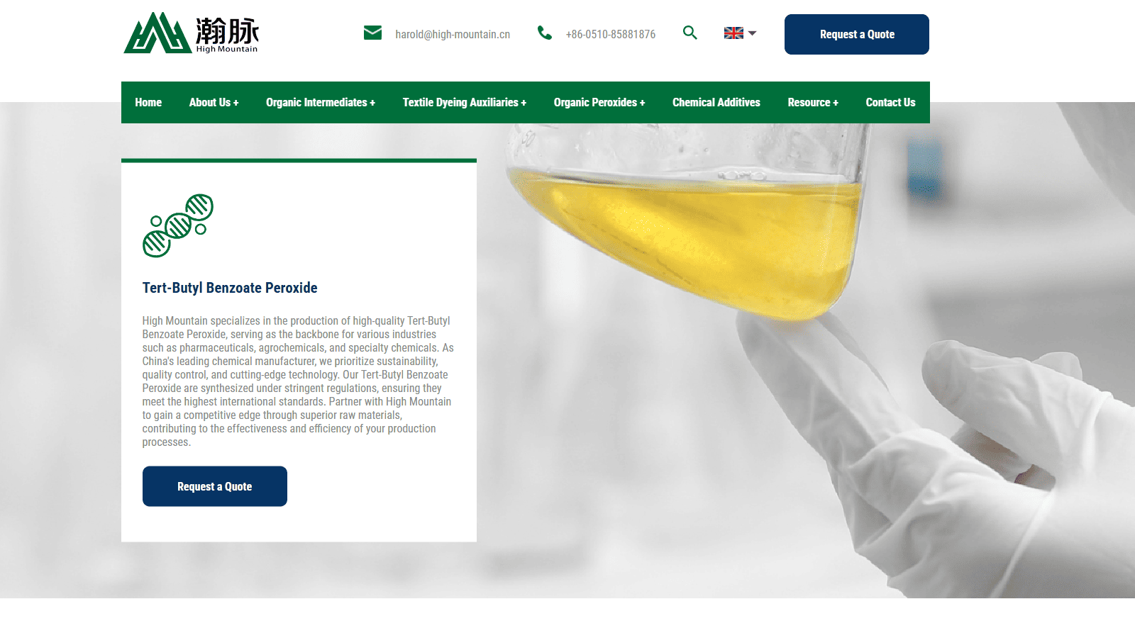 Looking for More Information? For those interested in learning more about chemical safety or looking for specific guidelines on handling Tert Butyl Benzoate Peroxide, contact a professional chemical safety consultant or visit High Mountain website for further resources.